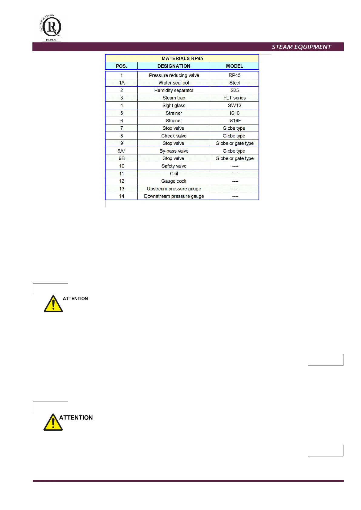 Information sheet are available (IS - RP45) and typical assembling drawing.