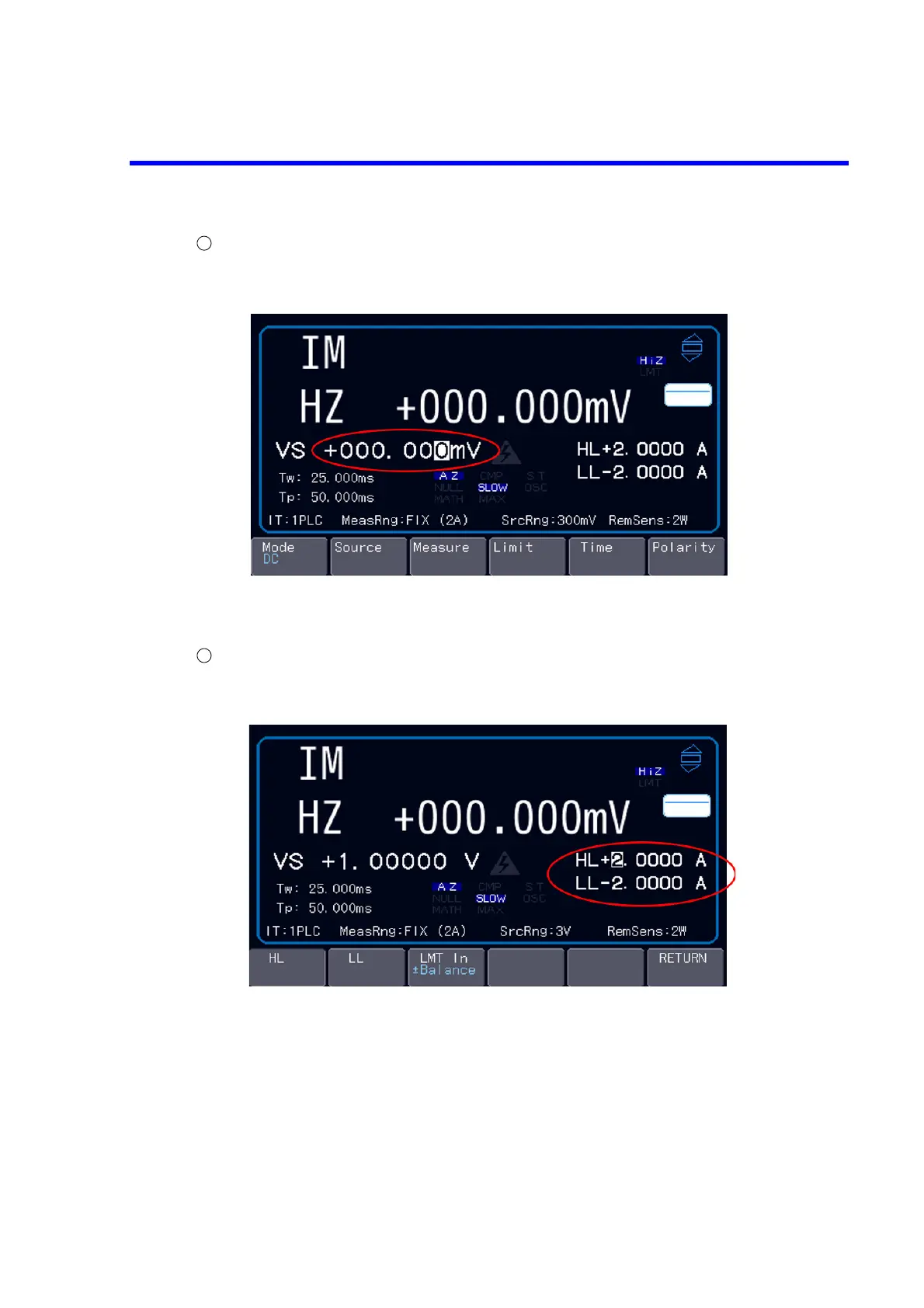 (IS) is selected, voltage limit (VL) is automatically set in the same way.