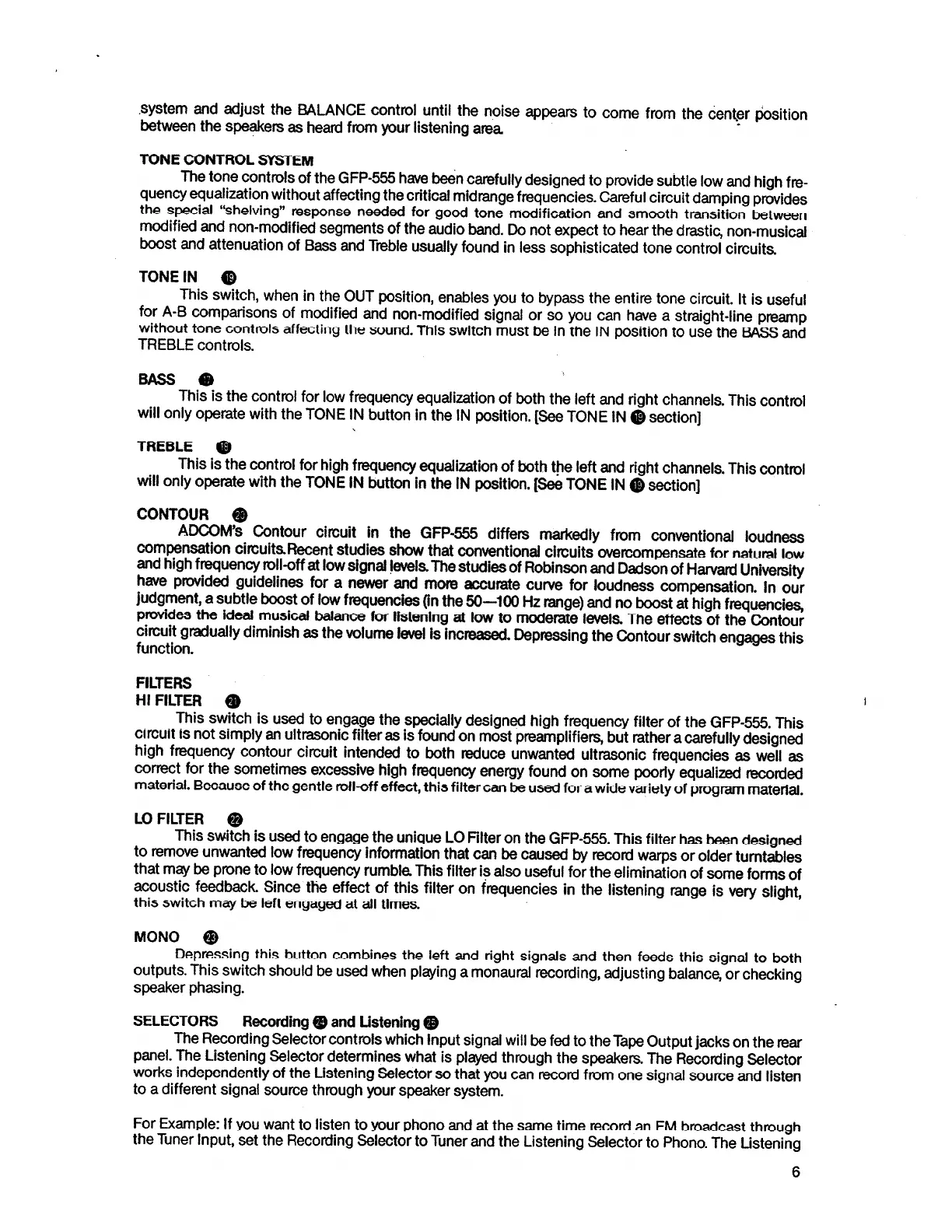 Adcom GFP-555 - Tone Controls; Sound Shaping Features