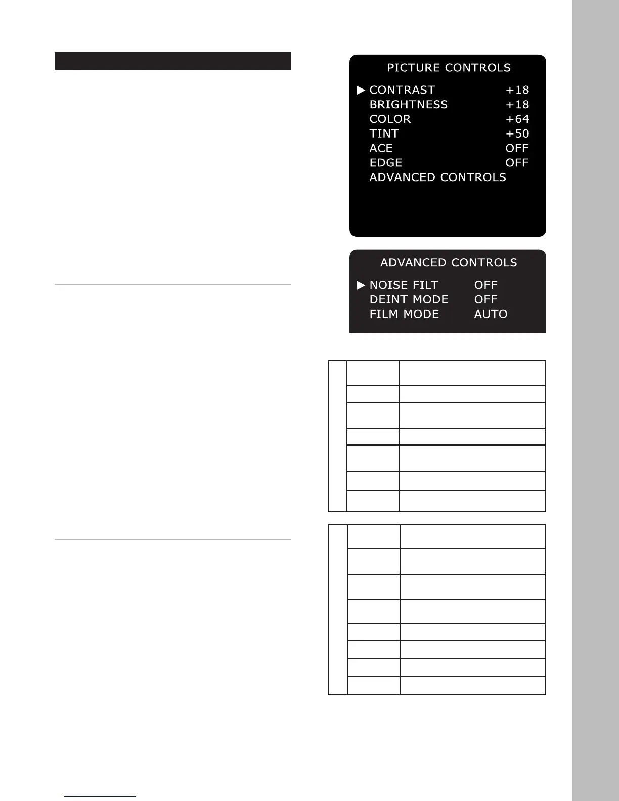 ters to reduce picture noise (see table at right).