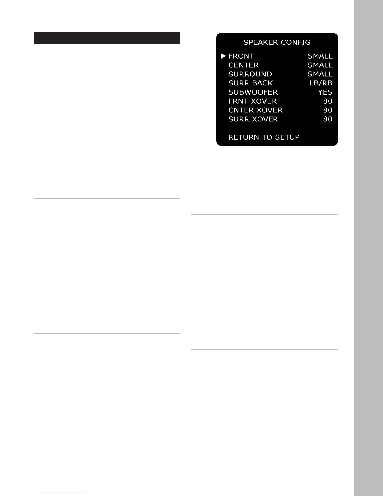 / buttons to select SPEAKER CONFIG,