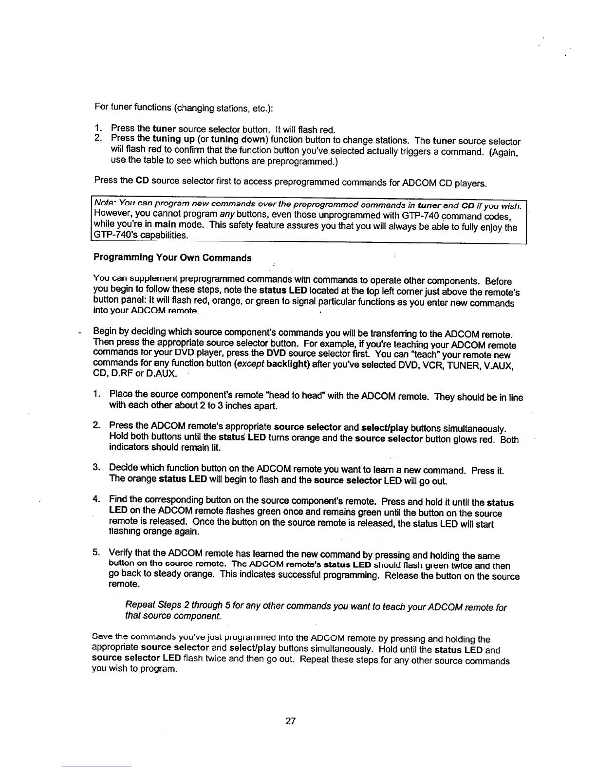 Adcom GTP-740 - Programming Custom Commands