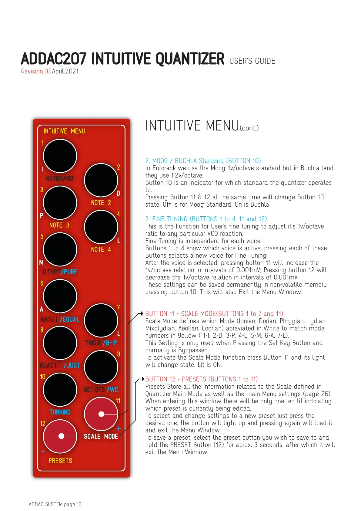 ADDAC207 INTUITIVE QUANTIZER USER’S GUIDE