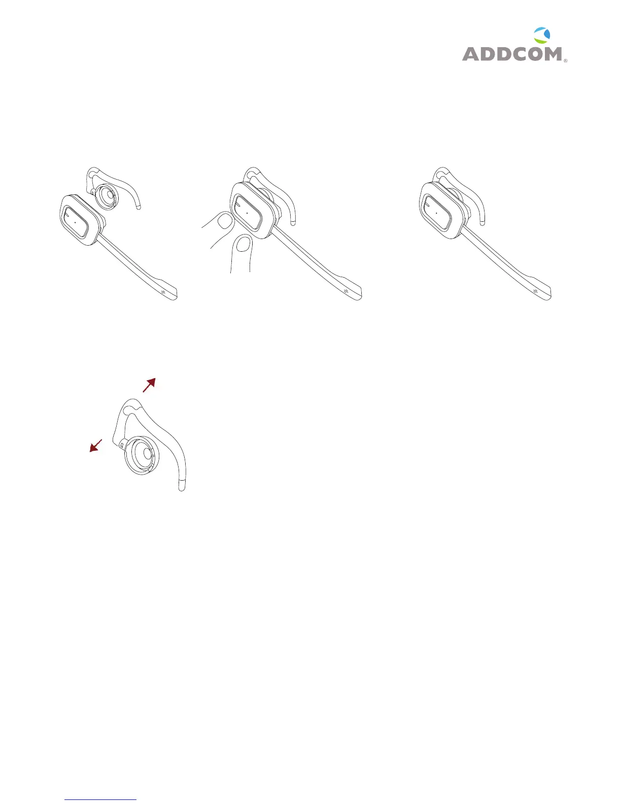 To attach the ear hook to headset, push the headset into the earhook unit until it clicks into place.