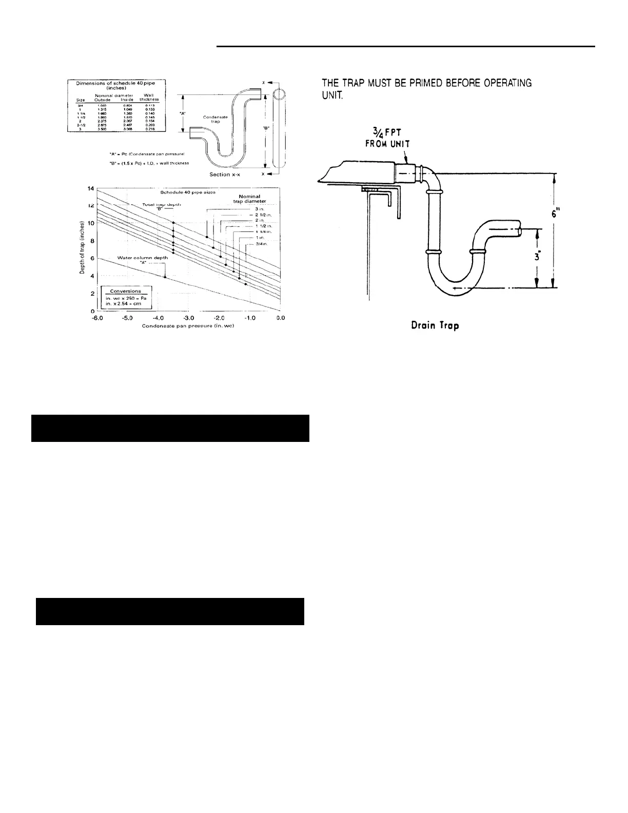 CAUTION: Units with high internal and external static pressure drops will require a deeper trap. Use the graph