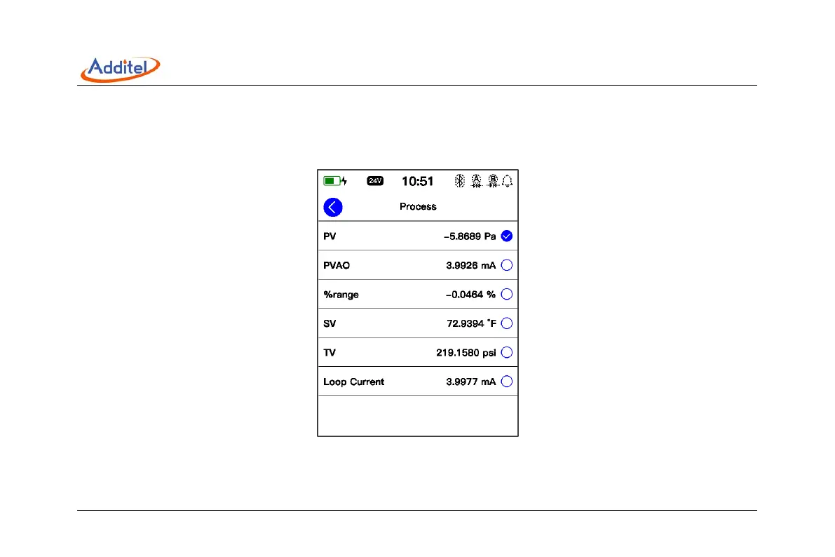 Additel 226Ex - Process Variable Settings; Figure 18 Process Variable Selection