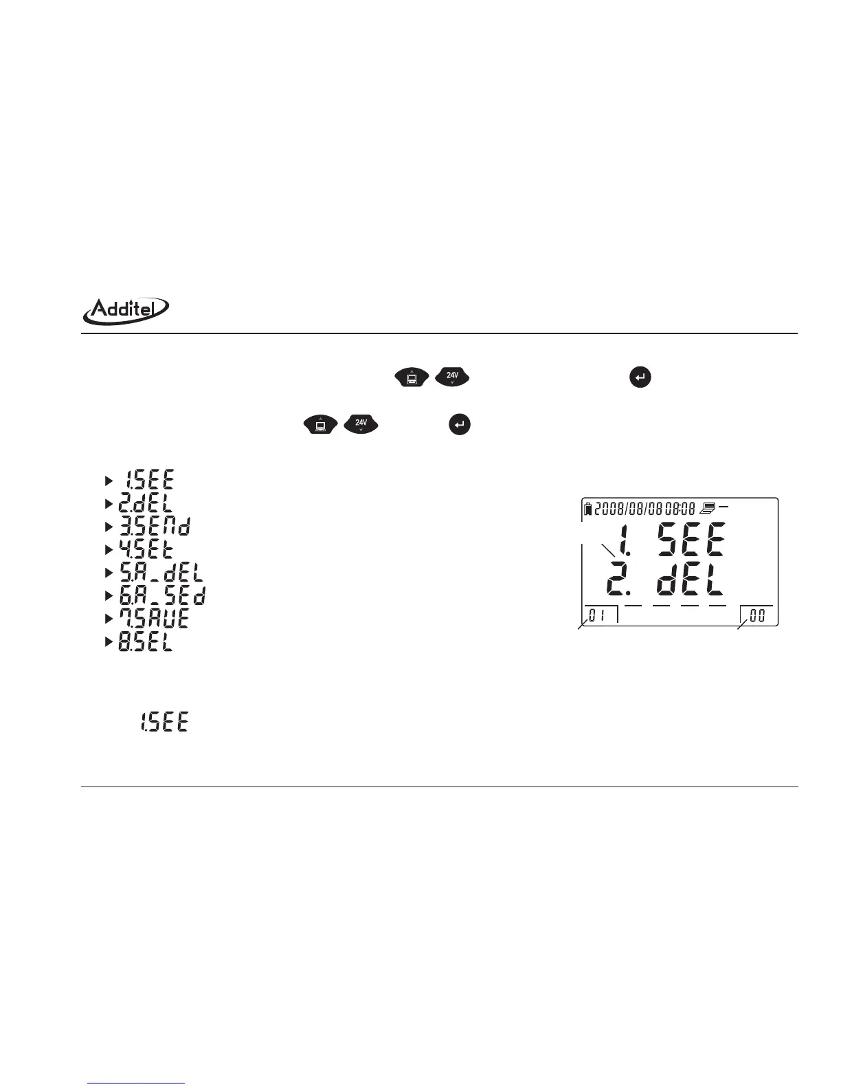 b. Screen shows the 1st file's attributes: CODE (second gauge ), factory default is 111111.