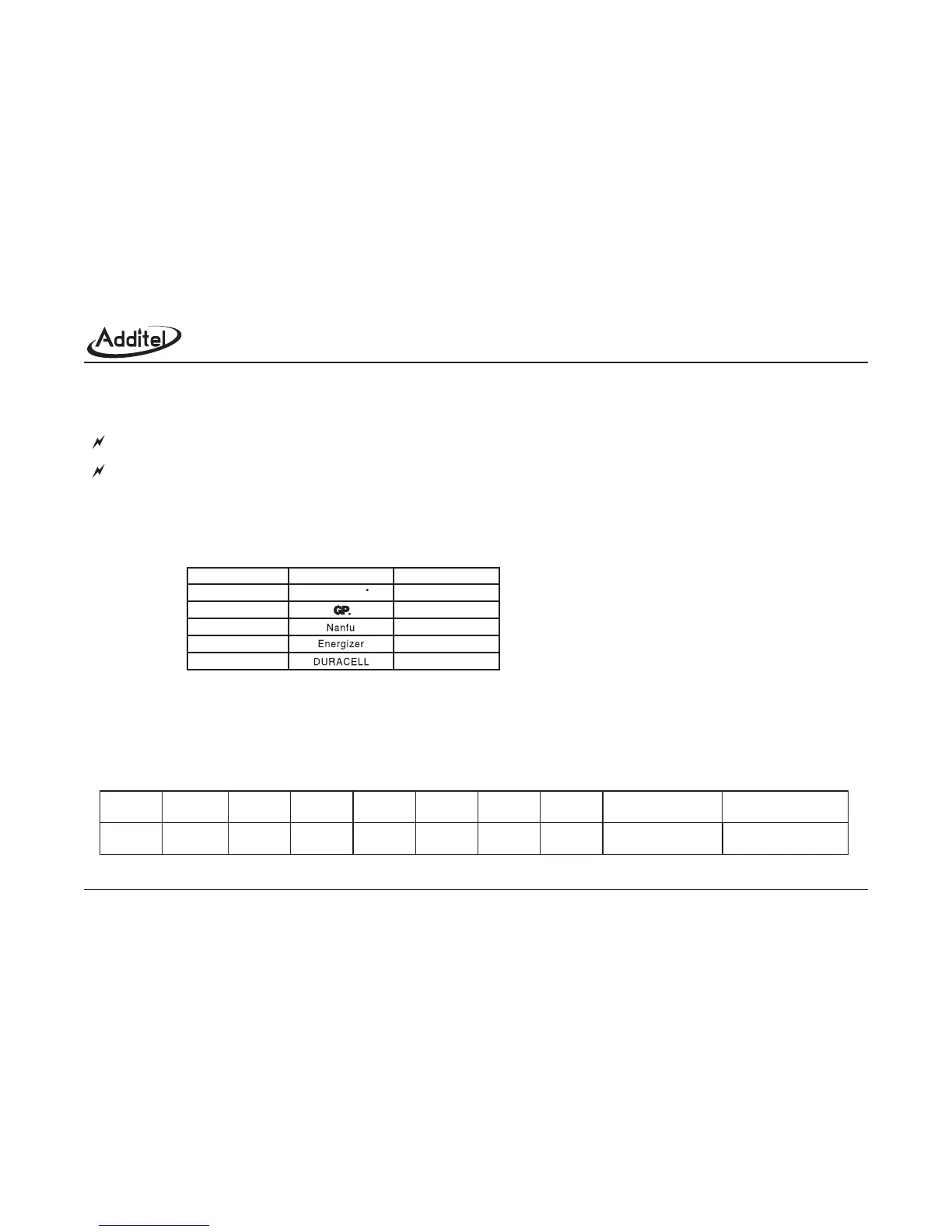Use only the battery types listed in the Approved Battery Table.