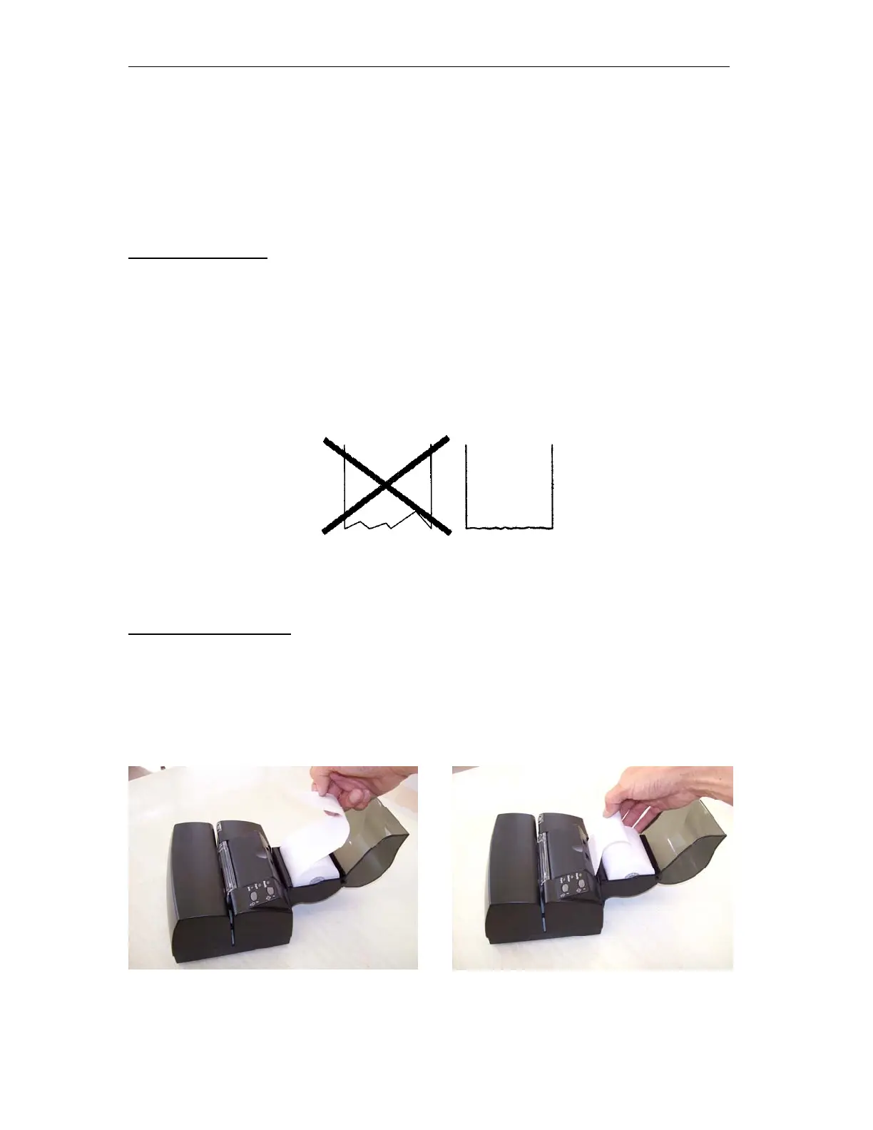 Make sure the paper on the new paper roll is cut or torn evenly at its end. See the illustration.