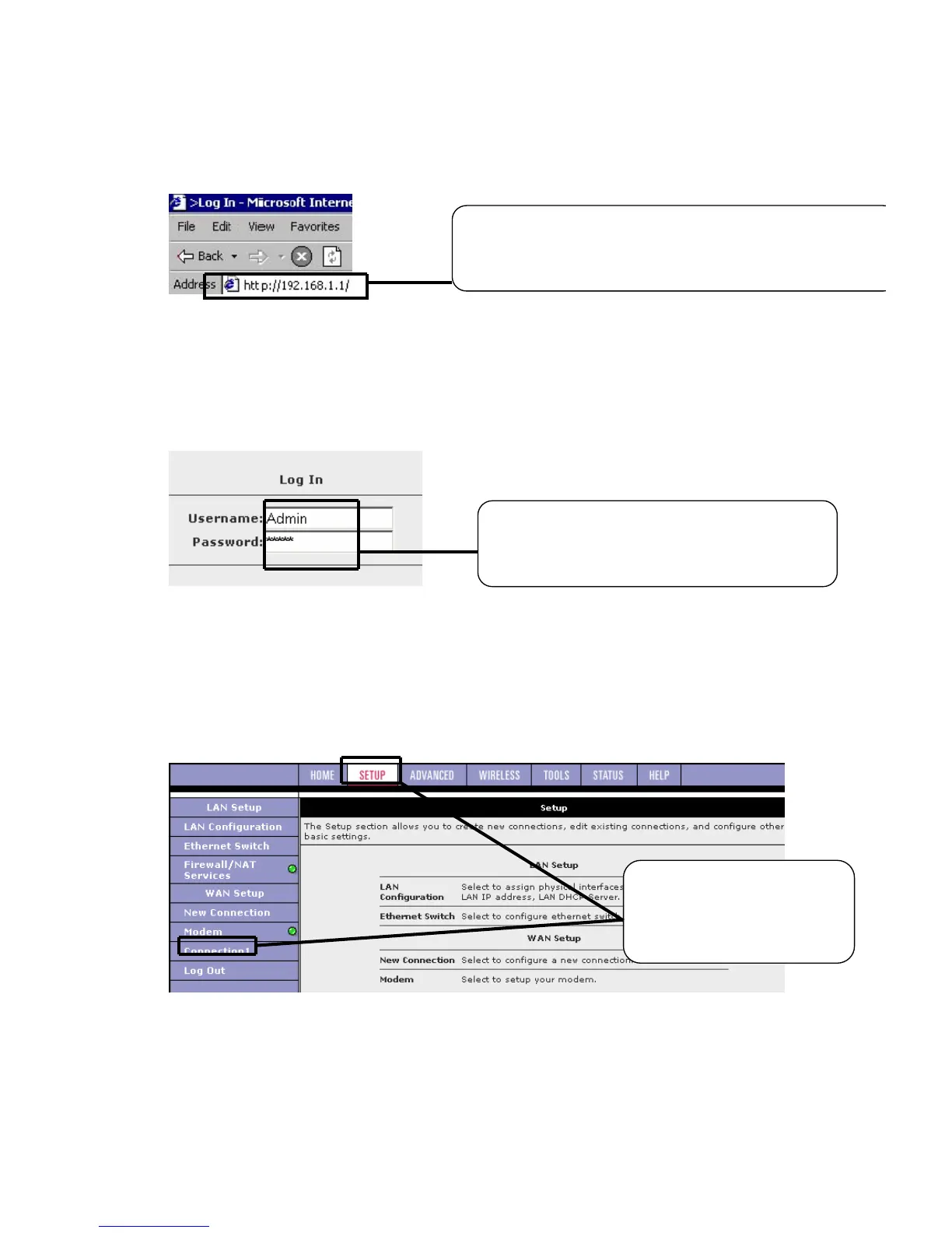 192.168.1.1 into the URL address field and then press
