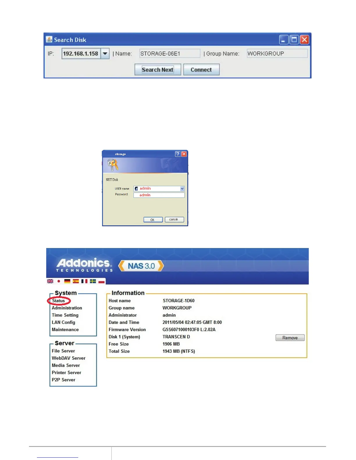 2. When NAS30U2 has been found, click “Connect” to enter web GUI
