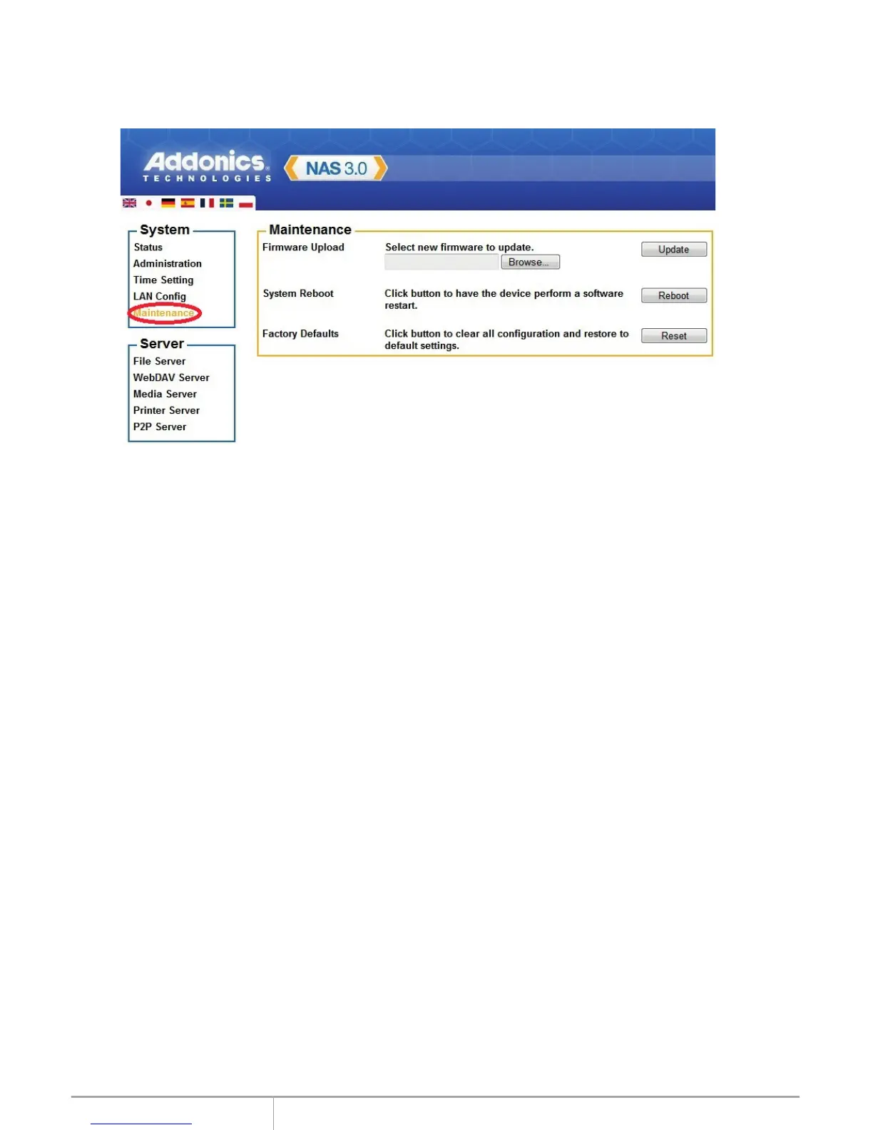 This page allows you to update the NAS30U2 firmware, to go back to factory