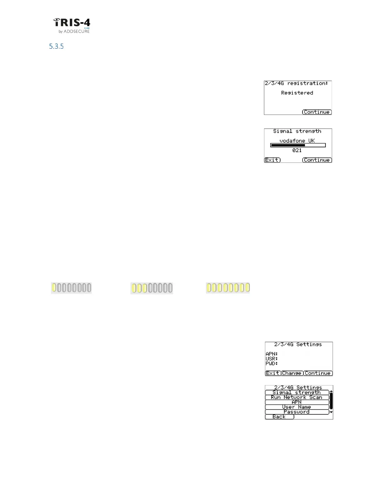 AddSecure IRIS-4 440 - Cellular setup and test; Cellular registration; Cellular signal strength