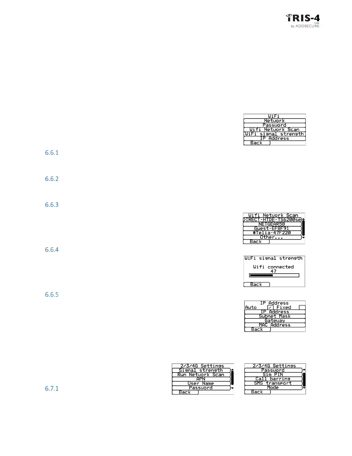 AddSecure IRIS-4 440 - Wi-Fi: For terminal with Wi-Fi capability; Network; Password; IP address