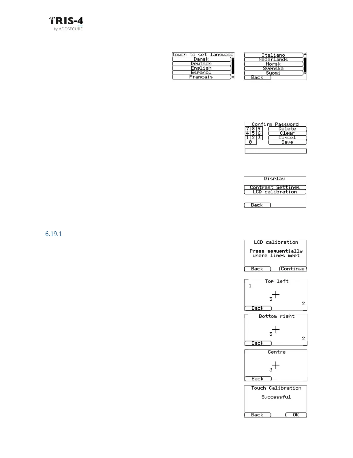 Click «Contrast Settings» or «Touch Calibration» and follow the on-screen