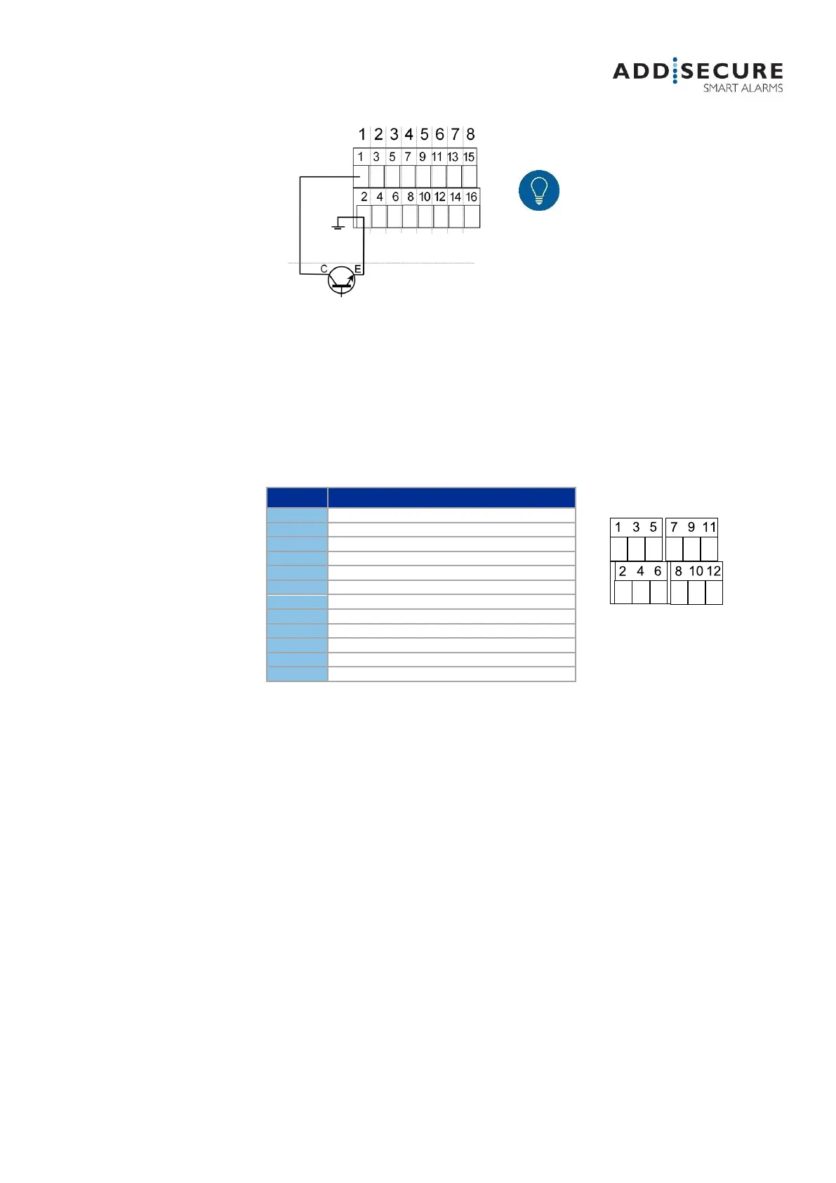 Connection: Connect relay 3 with pin 11 (normally open) and pin 9 (common) to the alarm