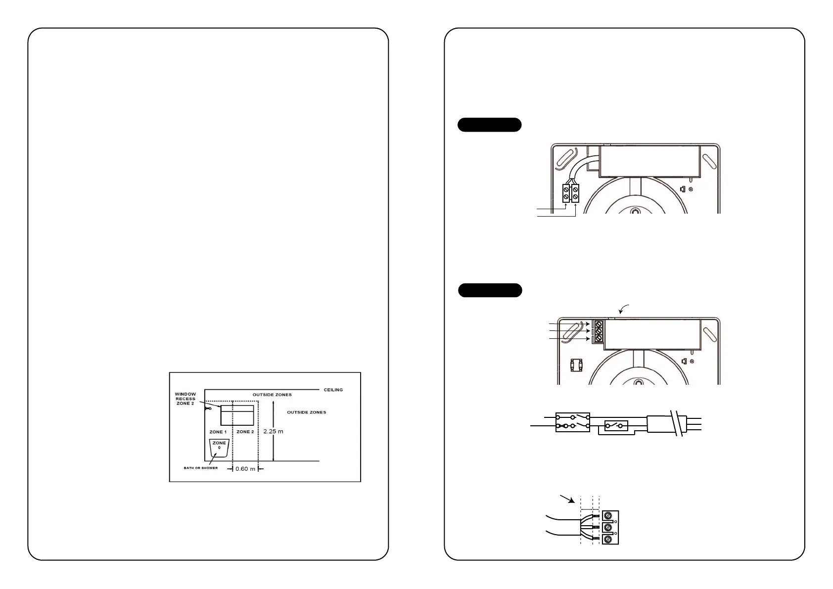Requires a Neutral, Switch Live and Permanent Live supply. Refer to internal wiring label or diagram