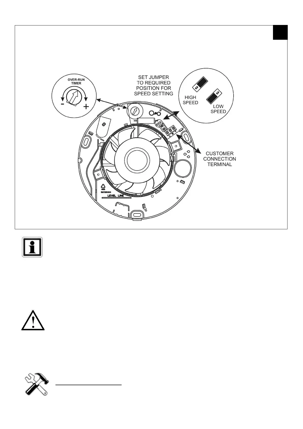 If installed in a kitchen fans must not be mounted immediately above a cooker hob, or eye level grill.