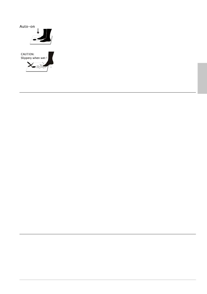 − Place the scale on an even, rm, and dry surface. Do not place the scale on carpet.