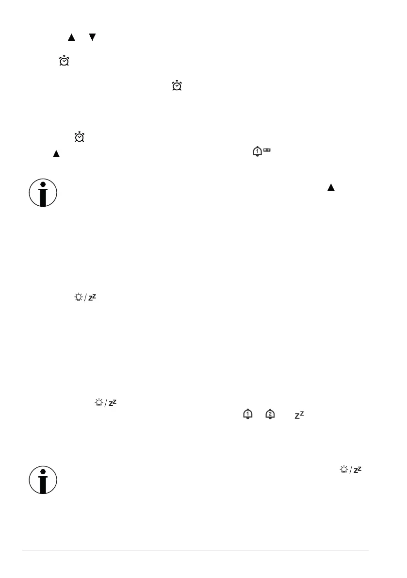 pressed for a few seconds during the snooze phase. The alarm is then only