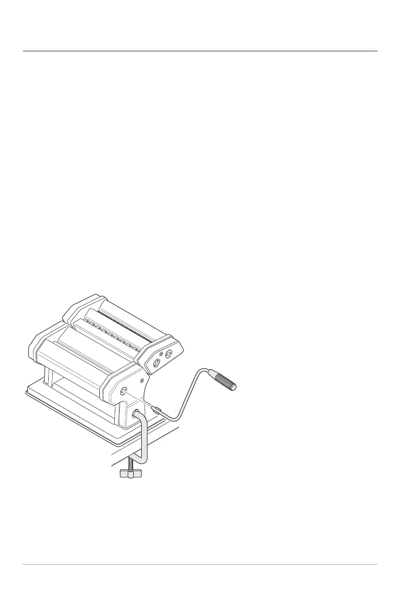 − Deje pasar un poco de masa de pasta por los rodillos y los rodillos de corte para
