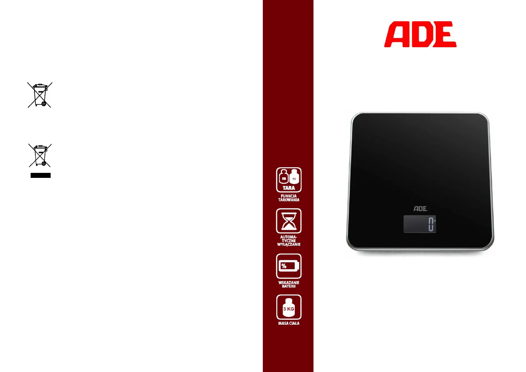 Baterii nie należy wrzucać do pojemnika z odpadami z gospodarstw domowych. Jako