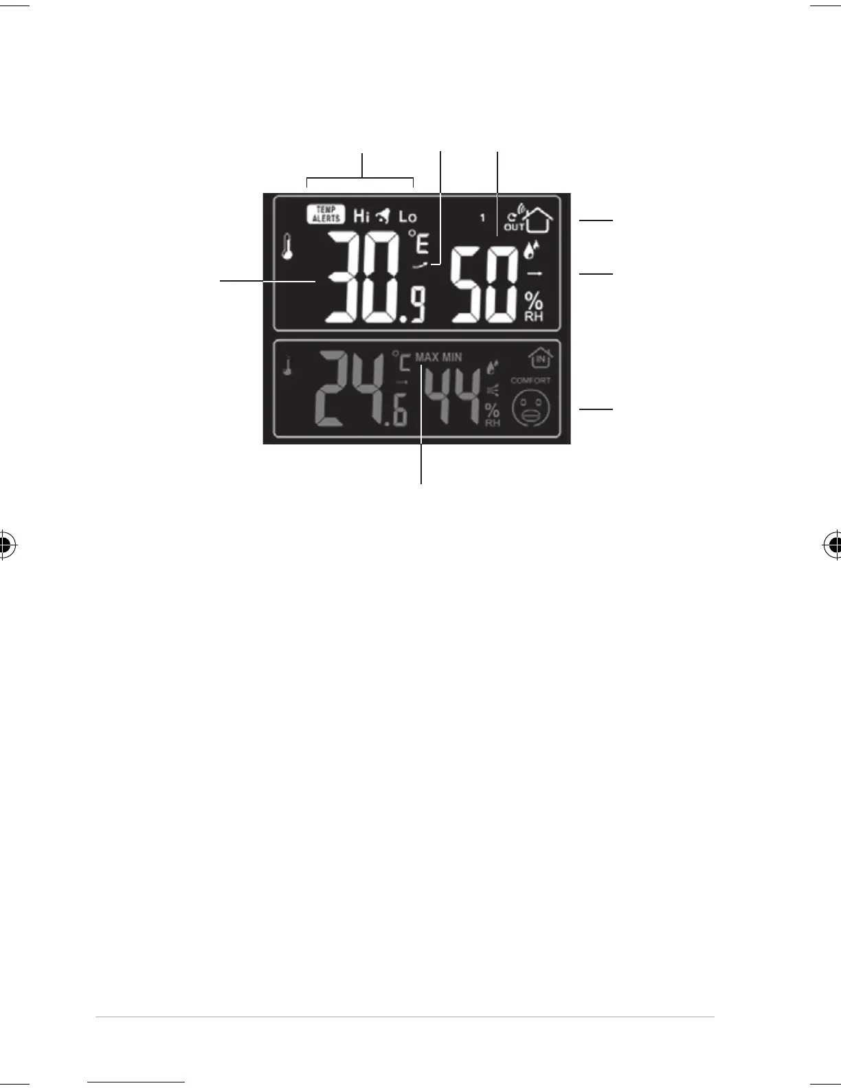 Viele Informationen für den Außen- (OUT) und Innen-Be-