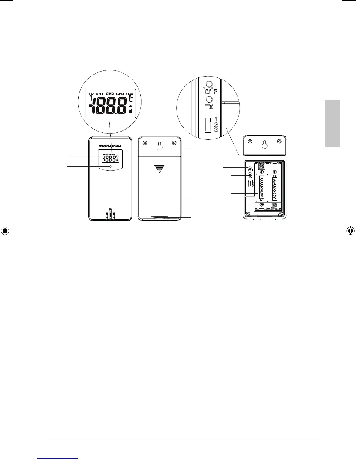 8 1, 2, 3 switch: Select the number of the transmission channel
