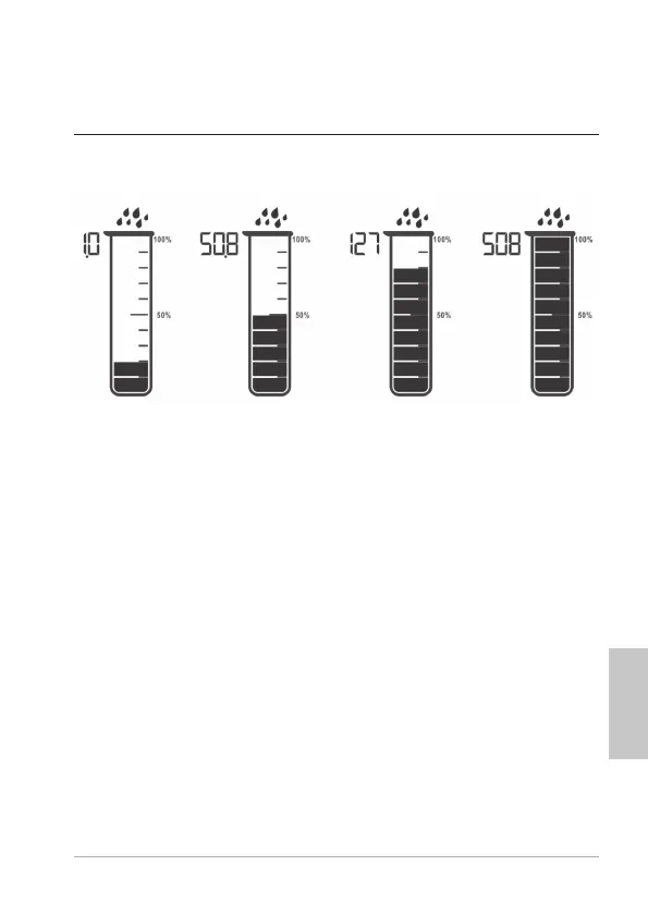 − Menzurka deszczu wyświetla 50,8 mm (2 cale).