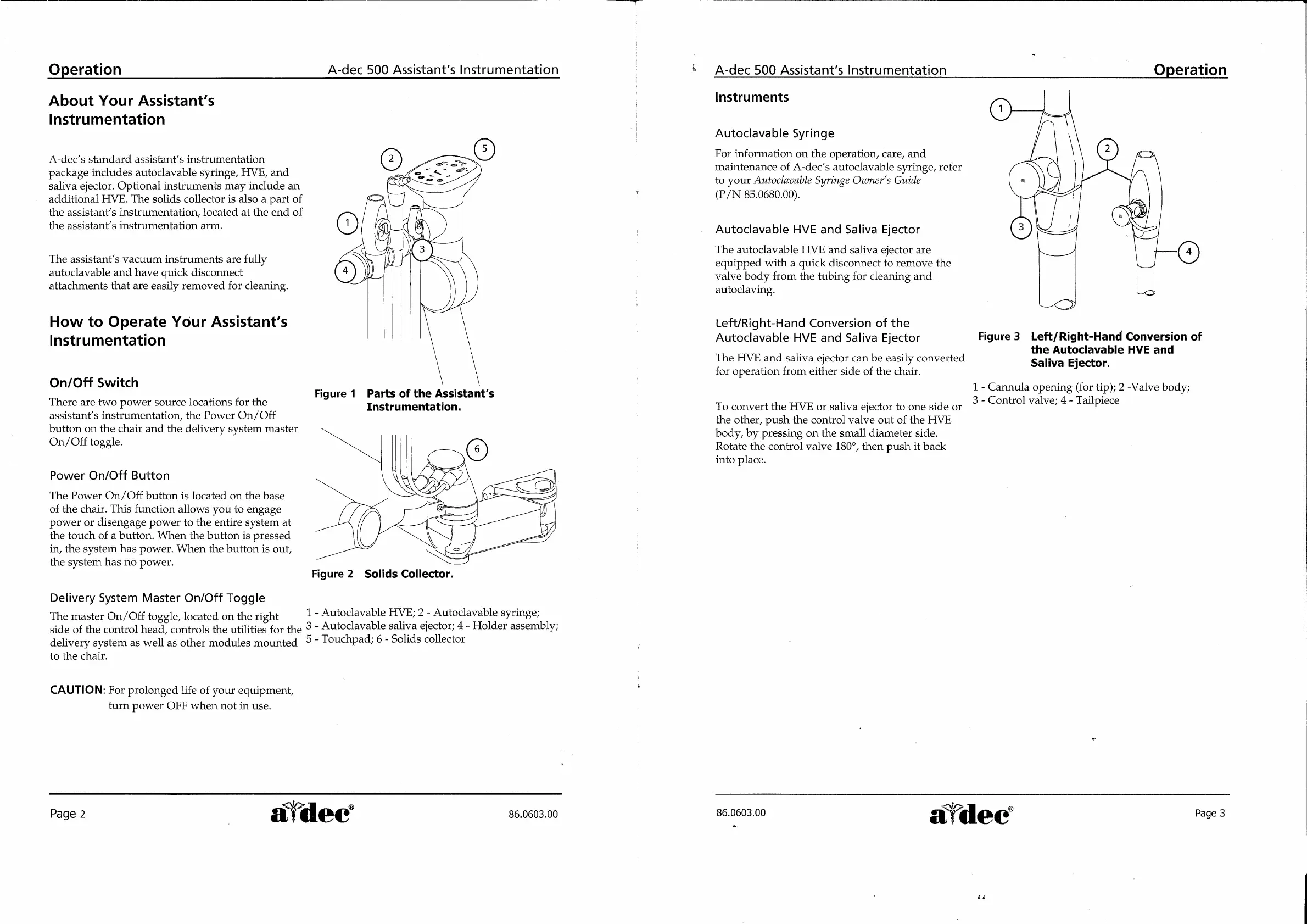 Adec 500 - Operation of Assistants Instrumentation; On;Off Switch Controls; Left;Right-Hand Conversion