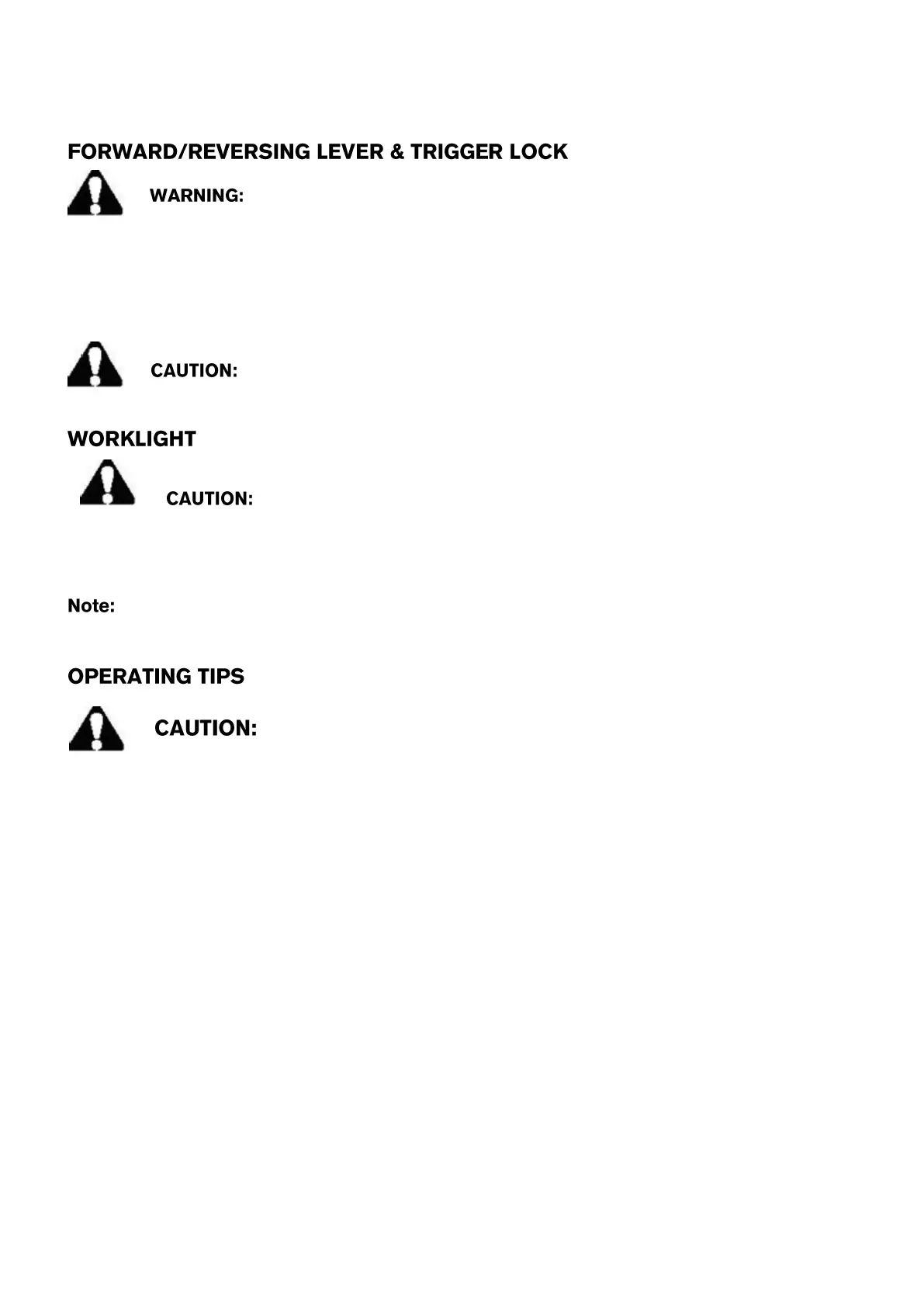 After tool use, lock trigger in “OFF” position to help prevent accidental starts