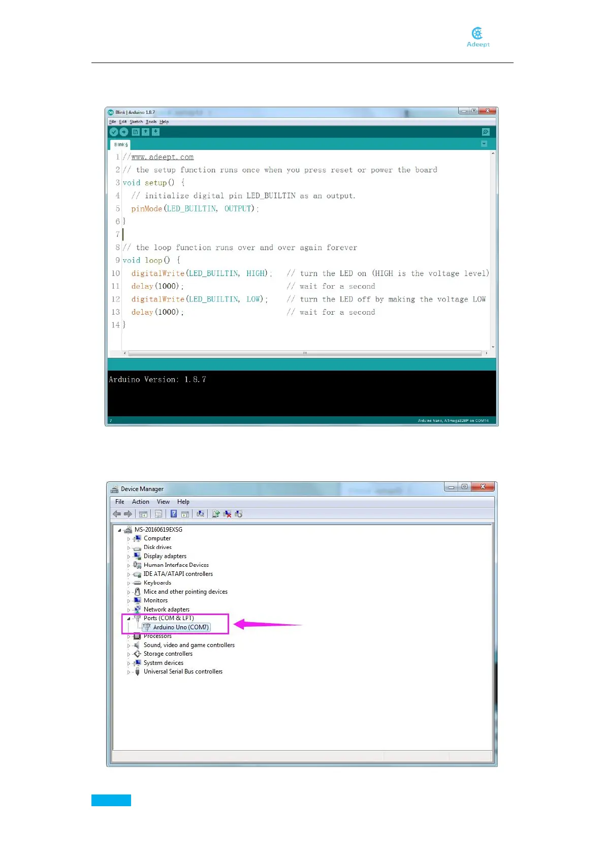 Open the system device manager, you will see the UNO port number is COM7. It may be
