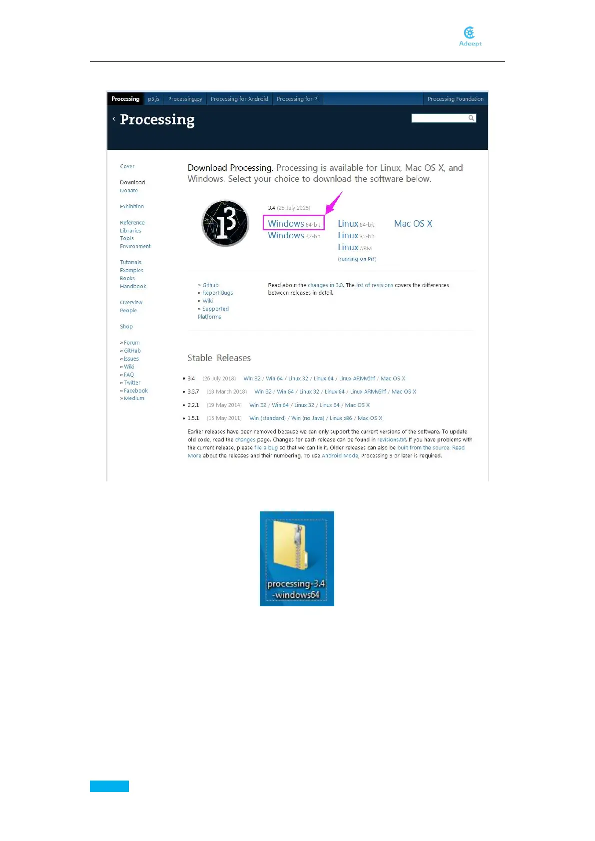 When finish downloading, you will get a compressed file "processing-3.4-windows64.zip".