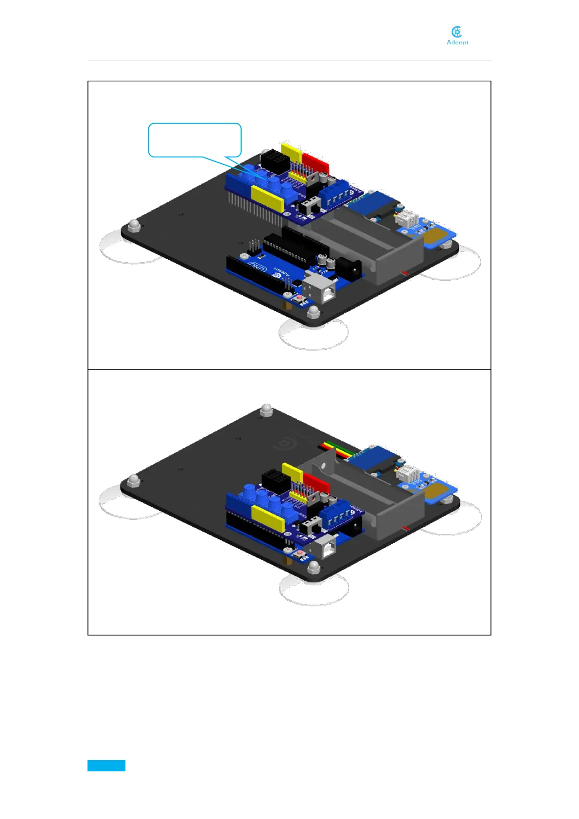 11.Insert Adeept Arm Drive Board into Adeept UNO R3 Board.