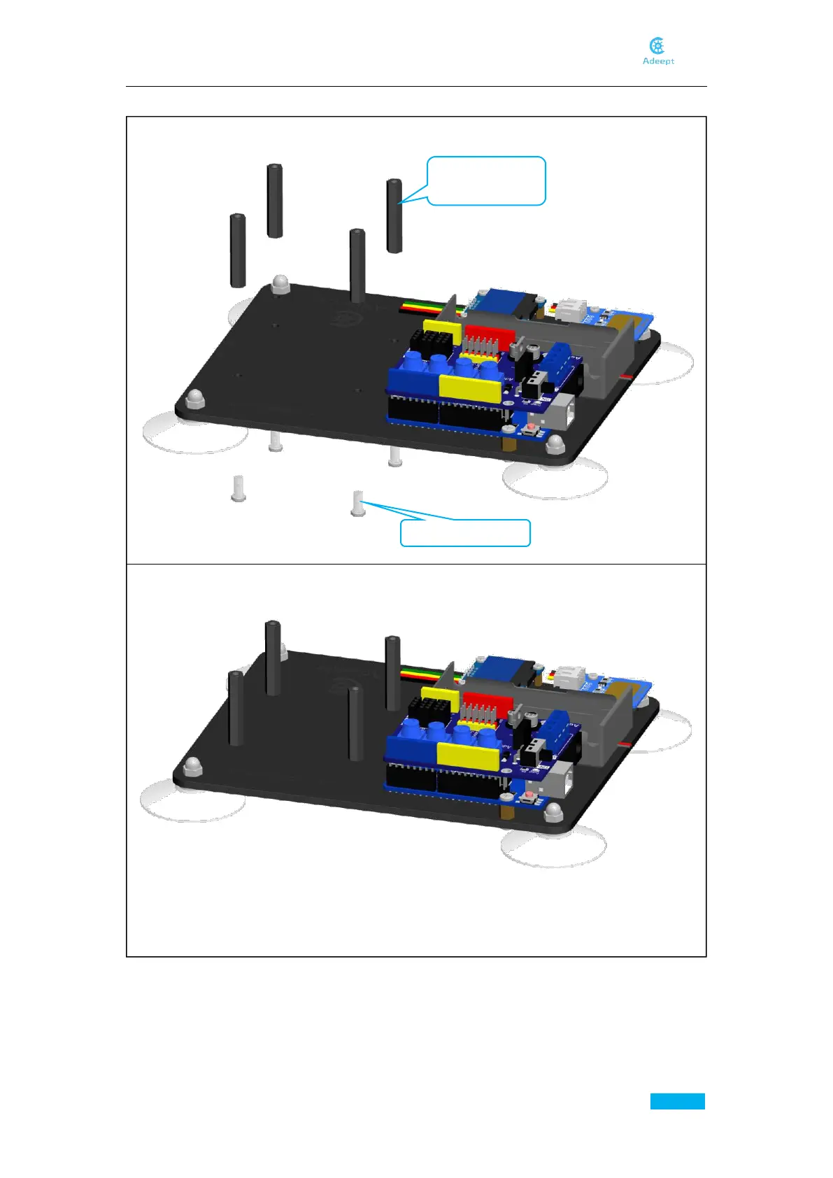 12. Fix four M3*30 Nylon Standoffs to A01.