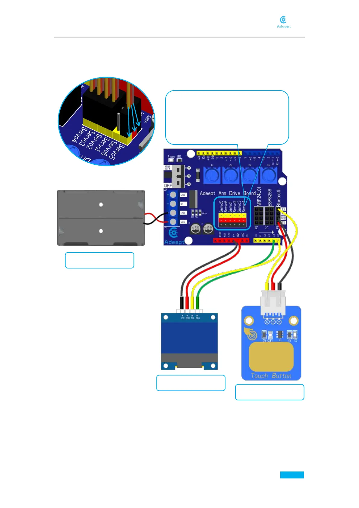 Connection of each devices for the robotic arm:
