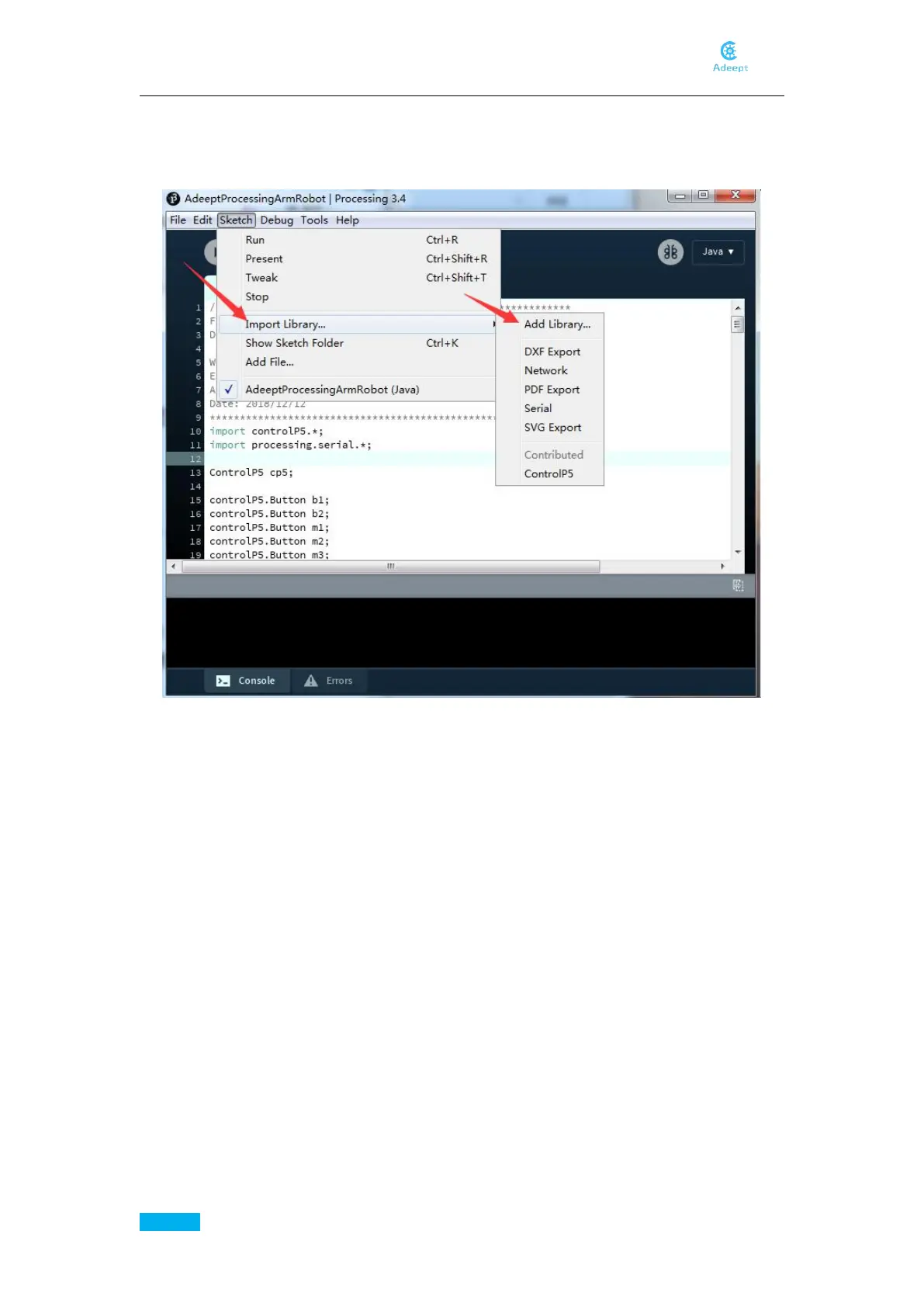If the code hasn’t been used in processing before, the library file controlP5 needs to be added.