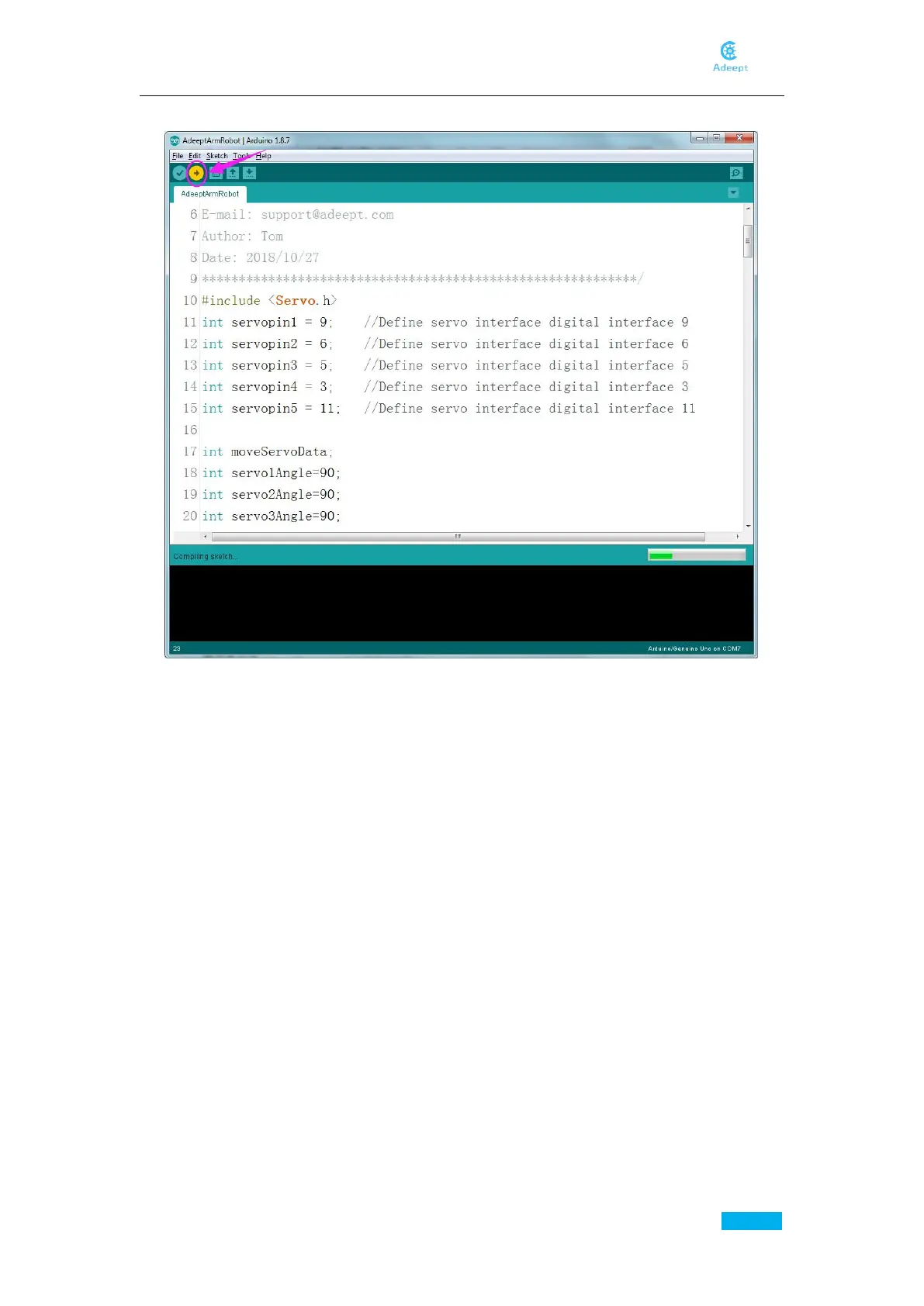 After downloading, close AdeeptArmRobot.ino.