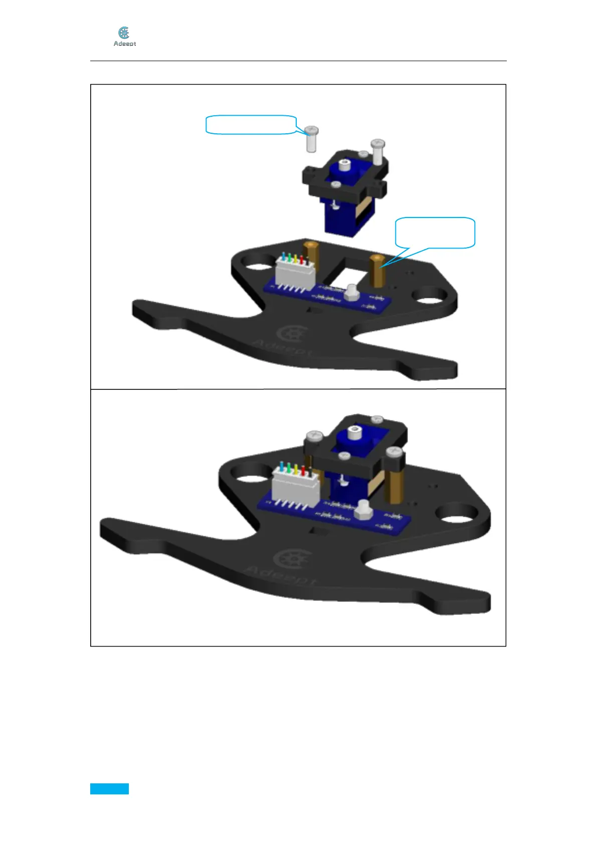 5. Fix the assembled servo to the M3*12 Copper Standoff on the A03.