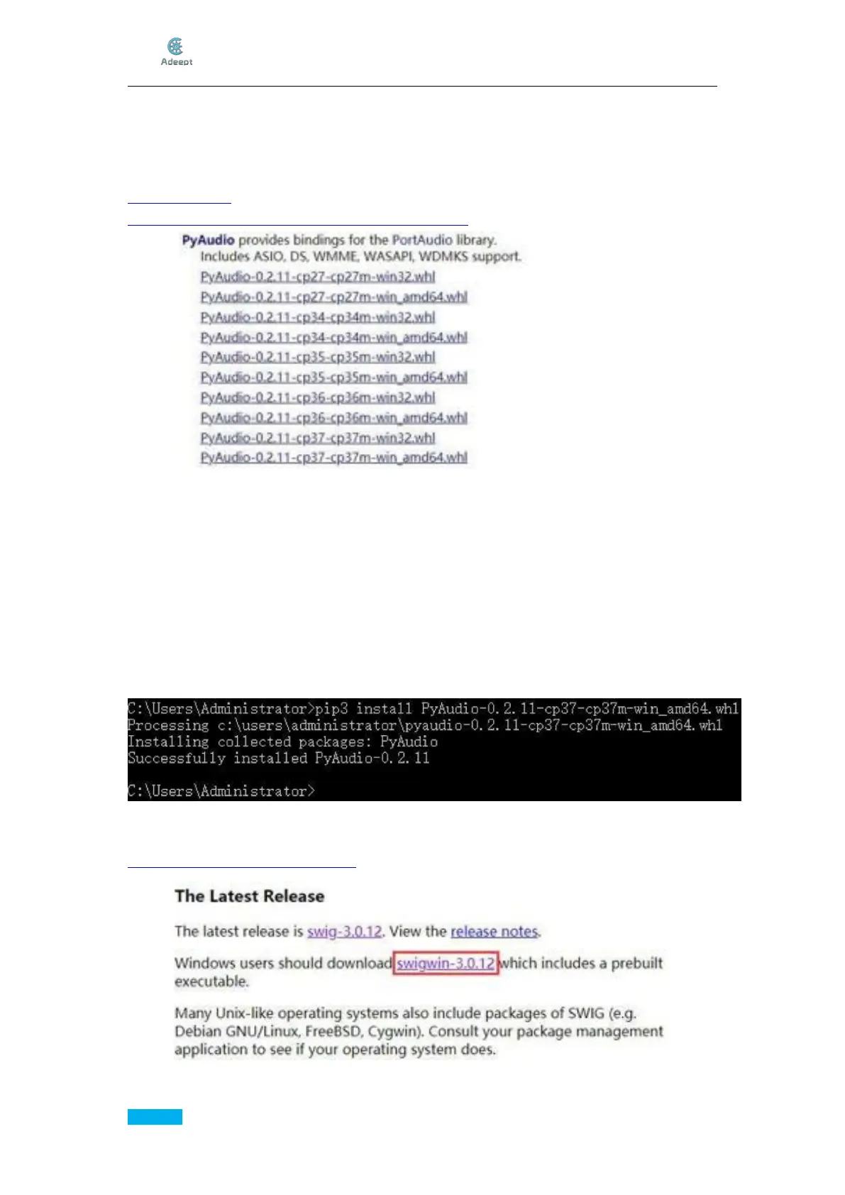 In our case, we download PyAudio-0.2.11-cp37-cp37m-win_amd64.whl for Python3.7 on