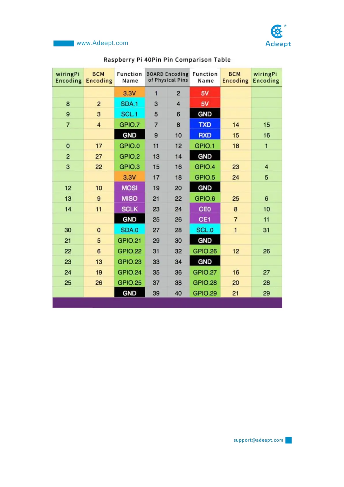 on the Raspberry Pi motherboard (1 ~40).