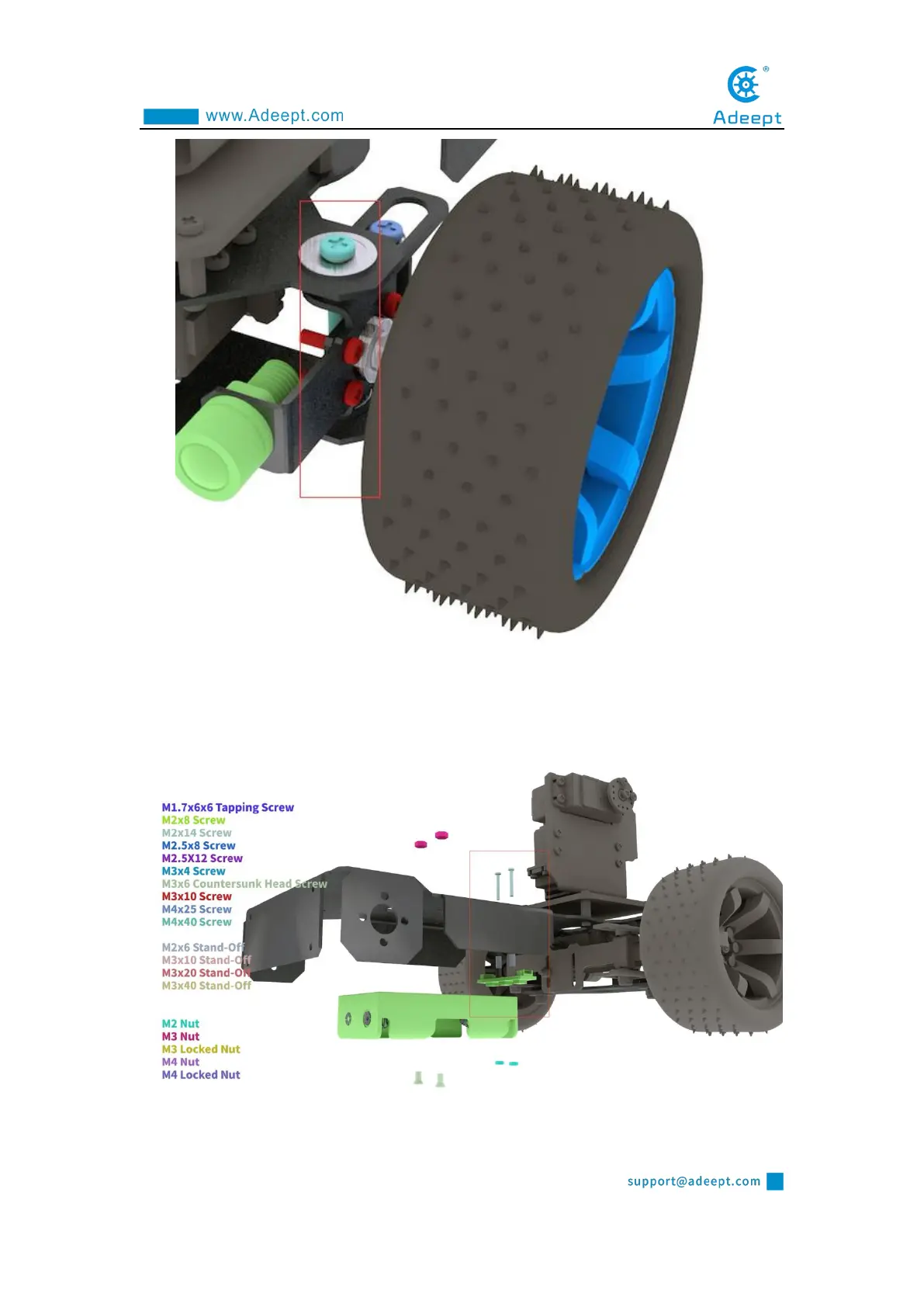 Install WS2812 LED lights. Use M2*14 screws to pass through the aluminum alloy,