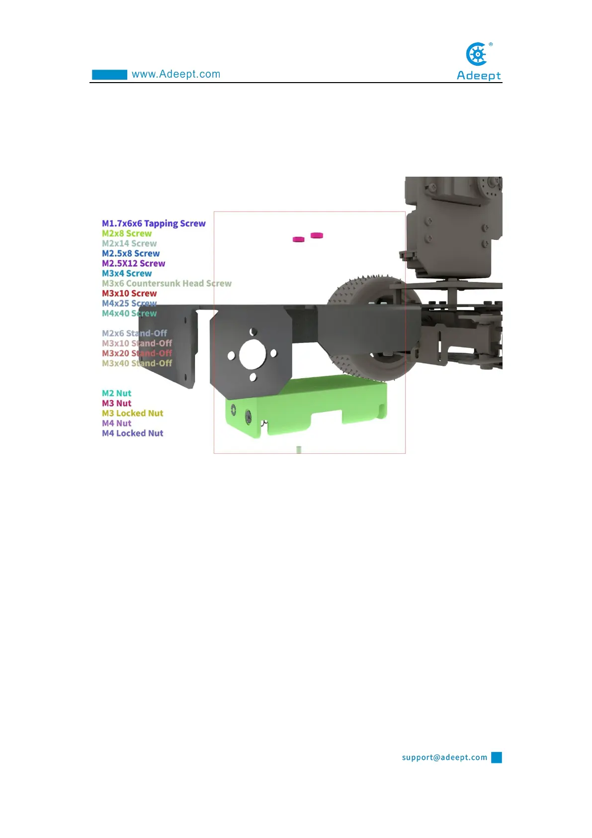 the bottom of the aluminum alloy and fix them with M2.5*4+6 copper pillars. Fix the