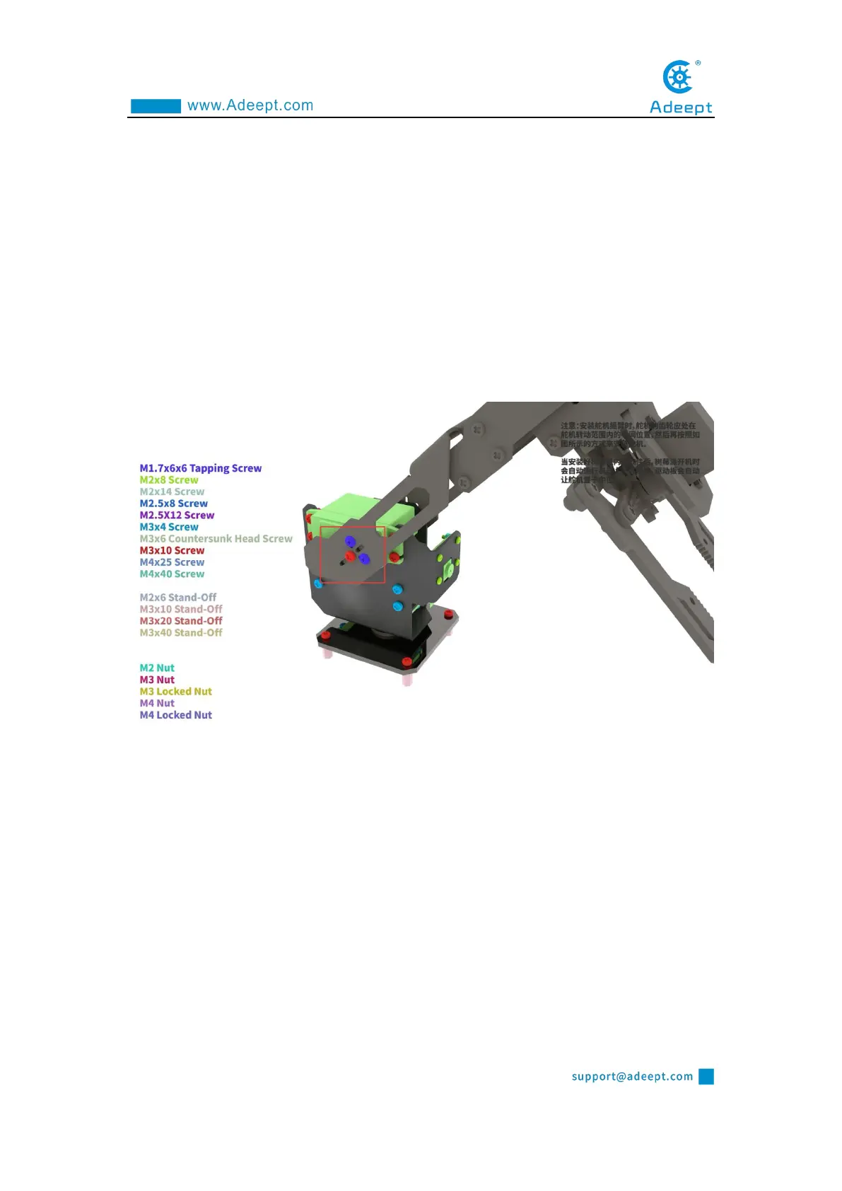 self-tapping screws to fix the direction of the robot arm. Use M3 lock nut to fix the