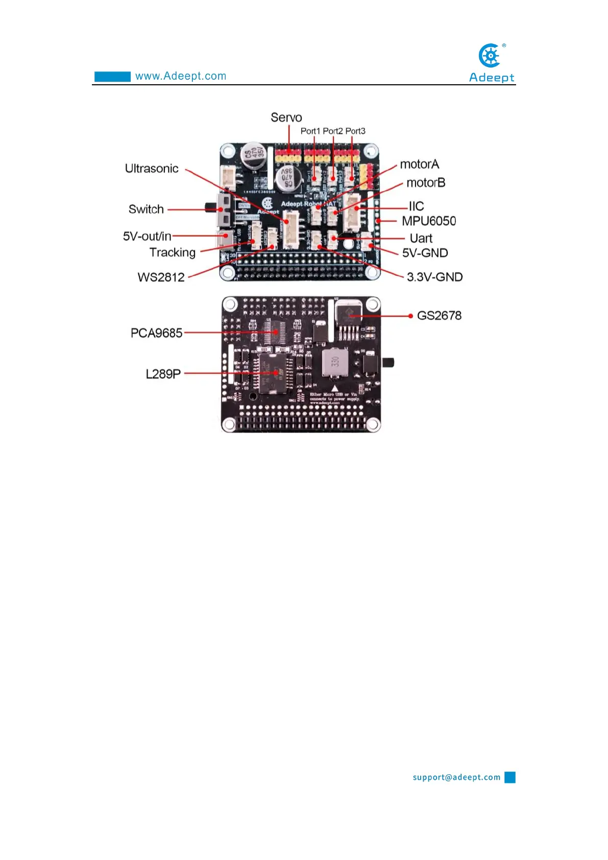 5. The servo that controls the robotic arm or ultrasonic swing up and down on the