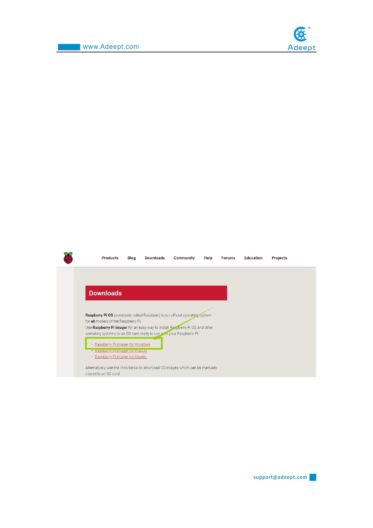For Windows system, click "Raspberry Pi Imager for Windows" to download.