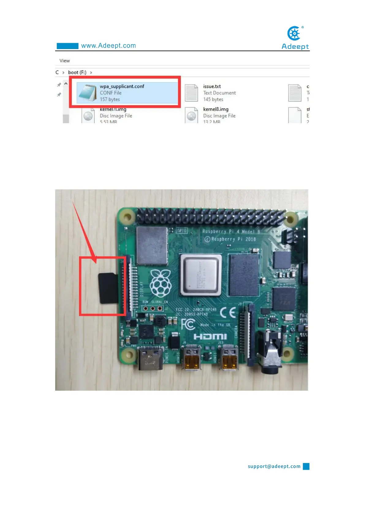 card slot on the Raspberry Pi development board, and use the Type-C data cable to