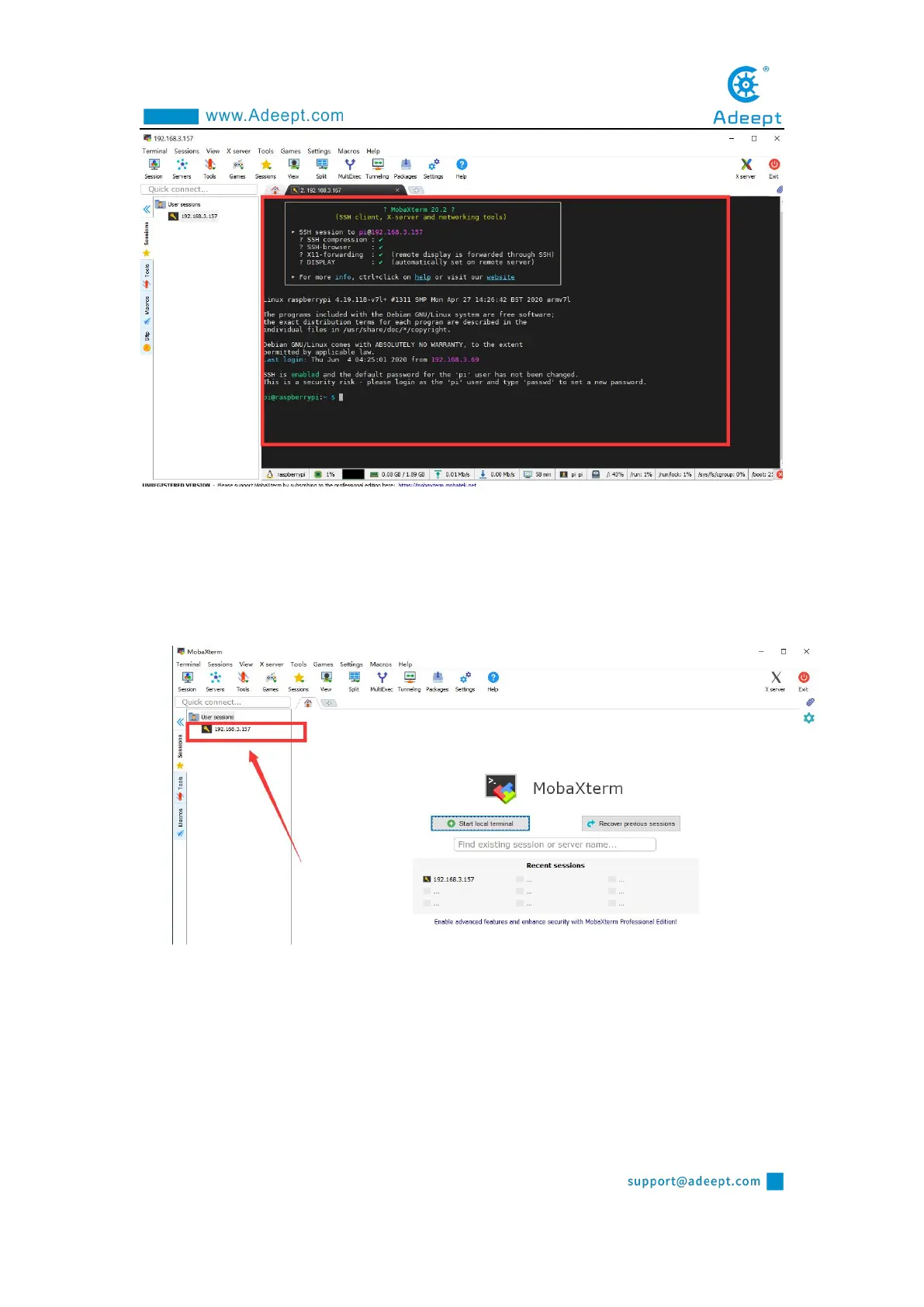 on the left: 192.168.3.157, enter the account name: pi, and you can directly connect to