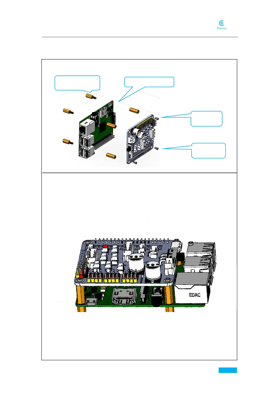 1. Fix four M2.5x10+6 Copper Standoffs on Raspberry Pi.