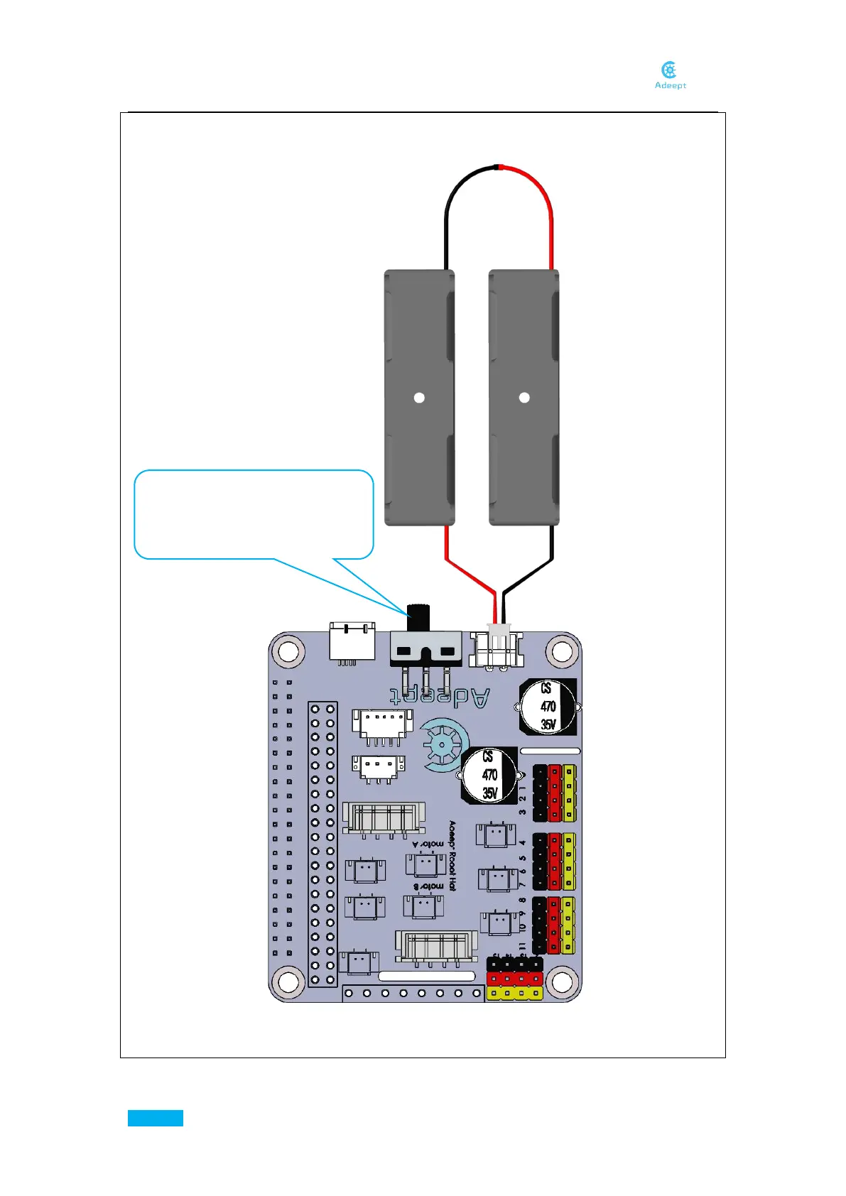 4. Connect the 18650 Battery Holder Set to the Adeept Motor HAT.